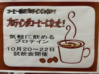 本日まで「プロテイン コーヒー」の試飲会を行っております月曜日から試飲会を行ていますが